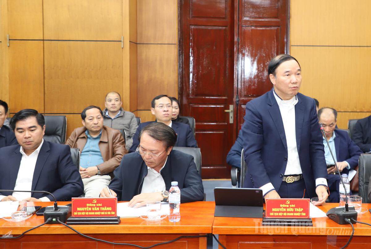Bí thư Tỉnh ủy đề nghị Hiệp hội Doanh nghiệp tỉnh, Hiệp hội Doanh nghiệp nhỏ và vừa tỉnh, cùng với sự hỗ trợ của nhà nước, cần tự lực, tự cường, khai thác tiềm năng, thế mạnh của tỉnh; đồng chí mong muốn các doanh nghiệp, doanh nhân sẽ tiếp tục nỗ lực khắc phục khó khăn, duy trì ổn định sản xuất kinh doanh; đoàn kết, năng động, sáng tạo, tích cực chuyển đổi số, ứng dụng khoa học công nghệ để nâng cao hiệu quả sản xuất, kinh doanh; bám sát chủ trương của Đảng, Nhà nước, của tỉnh Tuyên Quang thực hiện thắng lợi các nhiệm vụ trong năm 2026; phát huy trách nhiệm xã hội, tích cực tham gia các hoạt động an sinh tại địa phương...