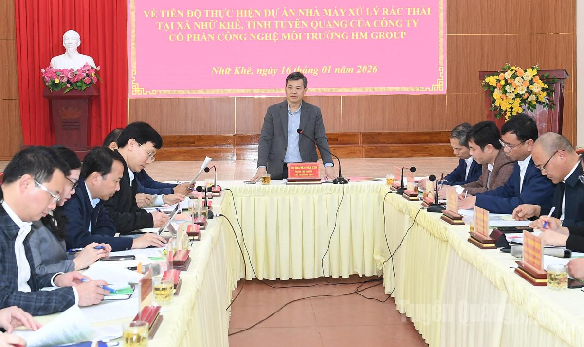 Dự án Nhà máy xử lý rác thải tại xã Nhữ Khê có diện tích khoảng 30 ha do Công ty cổ phần Công nghệ môi trường HM Group đầu tư với kinh phí 180 tỷ đồng. Khi hoàn thành, Nhà máy có công suất xử lý rác thải 160 tấn rác/ngày và sản xuất, tận thu các sản phẩm hạt nhựa, phân hữu cơ vi sinh, phế liệu đã qua tái chế. Hiện nay, các đơn vị thi công đang tập trung nhân lực, máy móc để đẩy nhanh tiến độ thực hiện. Nhiều hạng mục như: nhà làm việc, văn phòng, bể tiếp nhận và ủ rác, hồ điều hòa, lò đốt rác…đang được hoàn thiện. Dự kiến đưa vào vận hành thử trong quý II năm 2026.