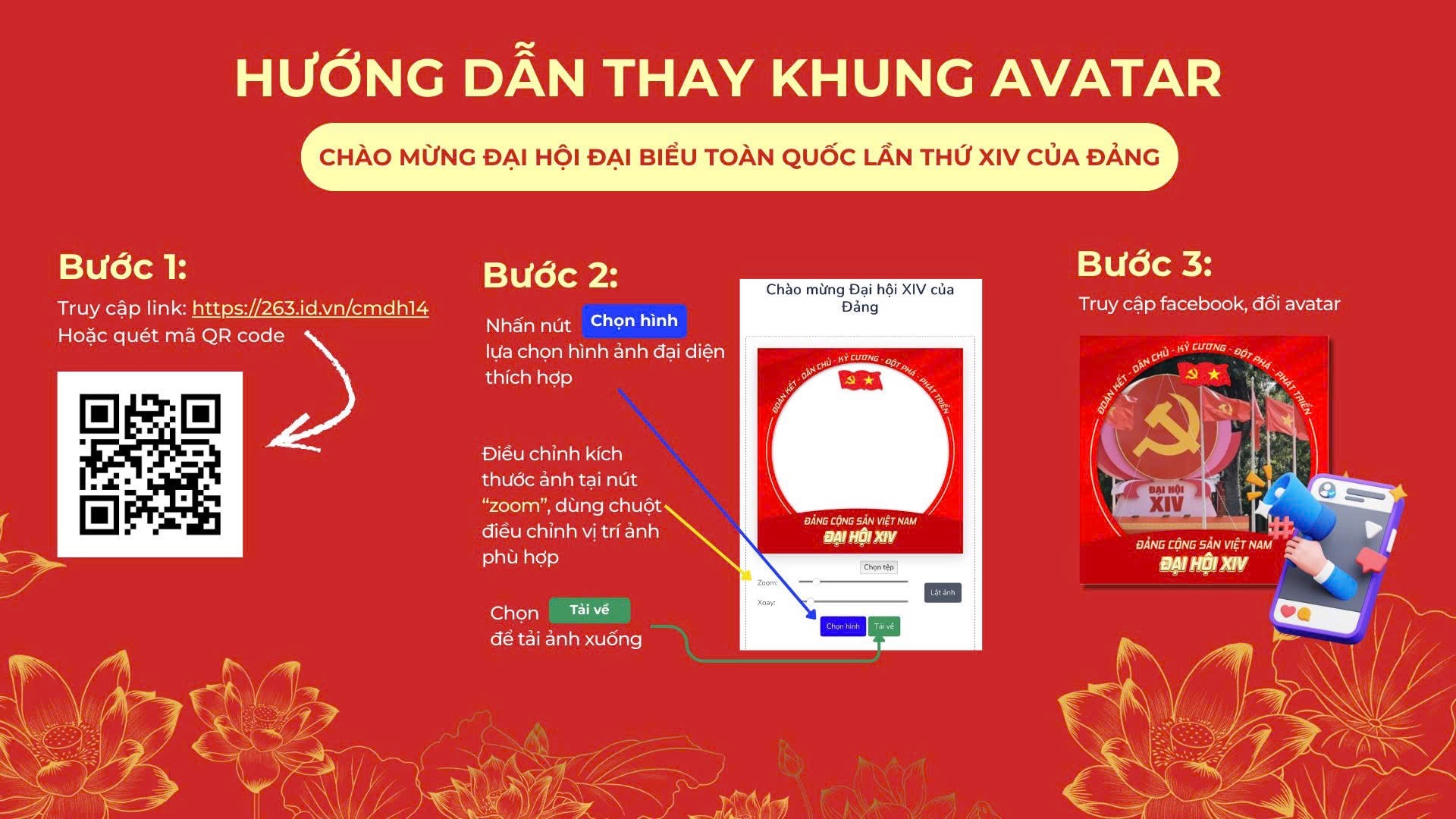 Ban Biên tập hướng dẫn thay khung hình đại diện chào mừng Đại hội đại biểu toàn quốc lần thứ XIV của Đảng