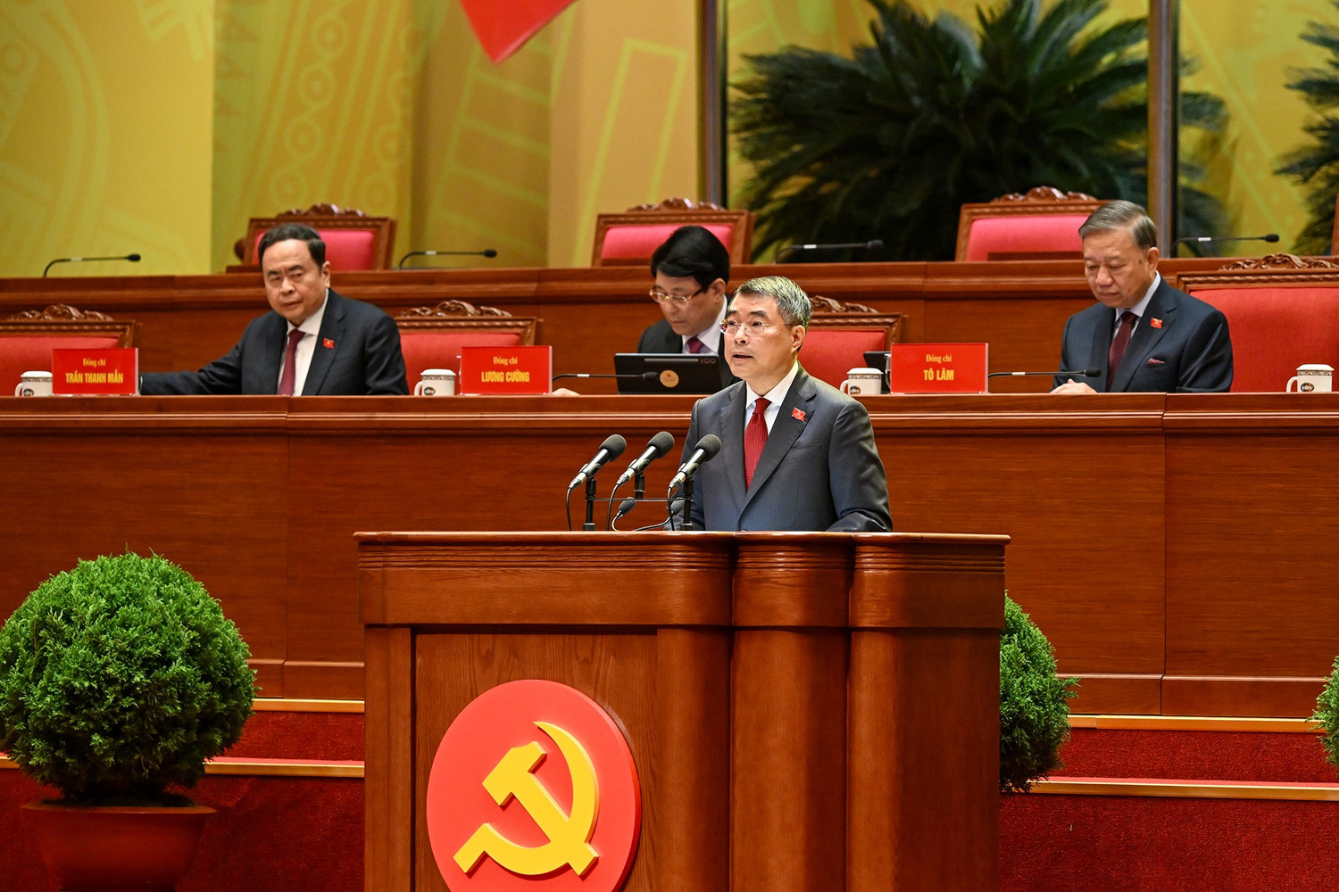 Đồng chí Lê Minh Hưng, Ủy viên Bộ Chính trị, Bí thư Trung ương Đảng, Trưởng Ban Tổ chức Trung ương báo cáo tiếp thu ý kiến các đoàn đại biểu góp ý vào quy chế làm việc của Đại hội và toàn văn dự thảo Quy chế làm việc đã tiếp thu ý kiến các đoàn đại biểu.