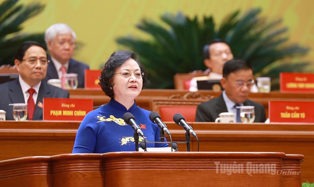 Phó Thủ tướng Phạm Thị Thanh Trà trình bày tham luận của Chính phủ tại Đại hội.