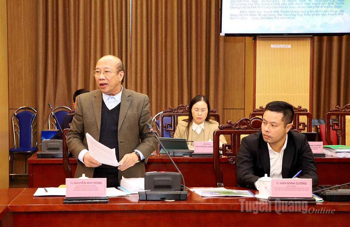 Giáo sư, Tiến sĩ Hoàng Văn Cường, Phó Chủ tịch Hội Khoa học kỹ thuật Việt Nam, nguyên Phó Hiệu trưởng Trường Đại học Kinh tế Quốc dân tham gia ý kiến vào Quy hoạch điều chỉnh tỉnh Tuyên Quang. |