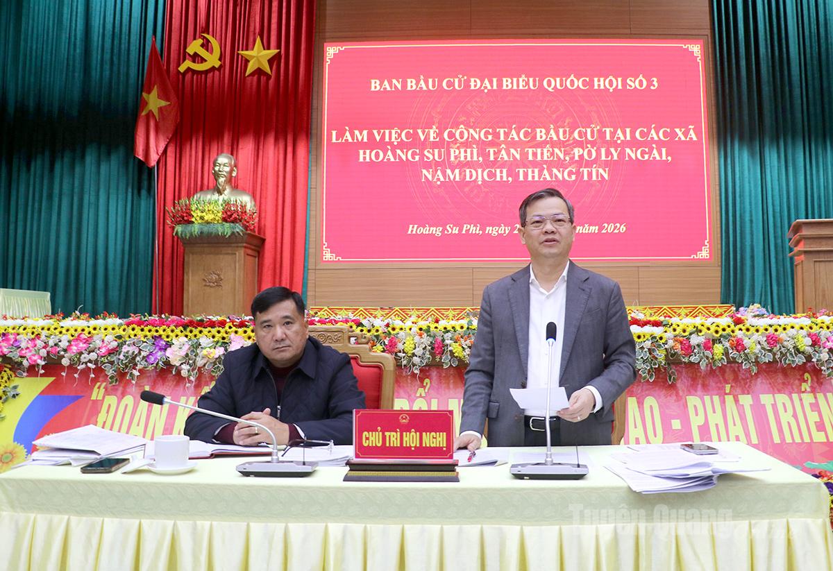 Chiều 27-1, Ban bầu cử đại biểu Quốc hội số 3 của tỉnh do đồng chí Nguyễn Văn Sơn, Phó Bí thư Tỉnh uỷ, Chủ tịch HĐND tỉnh, Phó trưởng Ban Chỉ đạo bầu cử tỉnh làm Trưởng đoàn làm việc về công tác bầu cử đại biểu Quốc hội khoá XVI và đại biểu HĐND các cấp nhiệm kỳ 2026 – 2031 tại các xã: Hoàng Su Phì, Tân Tiến, Nậm Dịch, Thàng Tín, Pờ Ly Ngài. Cùng đi có đồng chí Hầu Minh Lợi, Uỷ viên Ban Thường vụ Tỉnh uỷ, Phó Chủ tịch Thường trực HĐND tỉnh, Uỷ viên Ban Chỉ đạo bầu cử, Phó Chủ tịch Uỷ ban Bầu cử tỉnh; Thiếu tướng Nguyễn Đức Thuận, Ủy viên Ban Thường vụ Tỉnh ủy, Giám đốc Công an tỉnh, Ủy viên Ban Chỉ đạo bầu cử, Ủy viên Ủy ban bầu cử tỉnh.