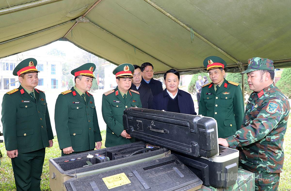 Bí thư Tỉnh ủy Hầu A Lềnh kiểm tra các trang thiết bị phục vụ rà phá bom mìn, vật liệu nổ tại Trung đoàn 877.