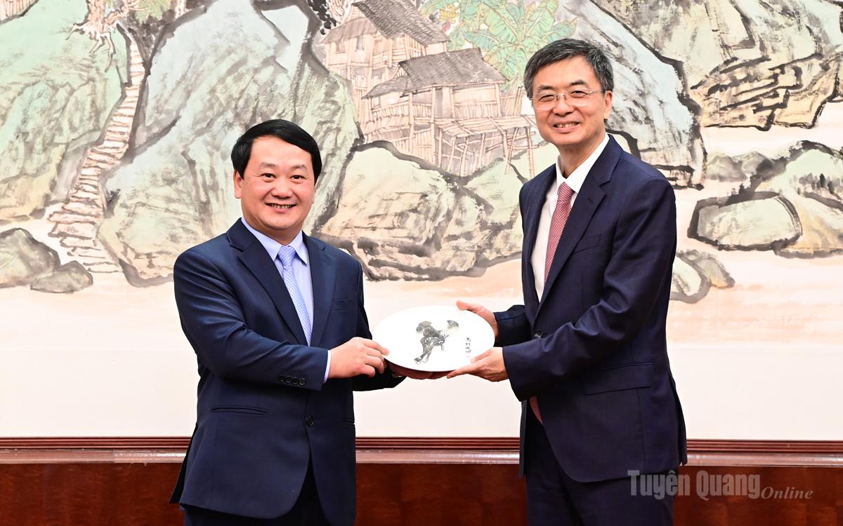 Đồng chí đề xuất với tỉnh Tuyên Quang, trong thời gian tới cần thắt chặt hơn mối quan hệ giao lưu hữu nghị song phương giữa hai bên; khuyến khích cán bộ hai tỉnh đến giao lưu, lưu học tập kinh nghiệm; tăng cường hợp tác về thương mại điện tử, trí tuệ nhân tạo. Quảng Tây mong muốn được hợp tác với Tuyên Quang trong lĩnh vực nông nghiệp, xuất - nhập khẩu nông sản, đặc biệt là mong muốn nhập các sản phẩm nông sản chất lượng cao của Tuyên Quang; đẩy mạnh hợp tác giáo dục, nhất là đối với cấp trung học phổ thông. Bên cạnh đó, hai bên cần tăng cường quản lý biên giới, giữ gìn an ninh khu vực biên giới để hạn chế các hoạt động tội phạm xảy ra tại đây như xuất nhập cảnh trái phép, mua bán ma túy...