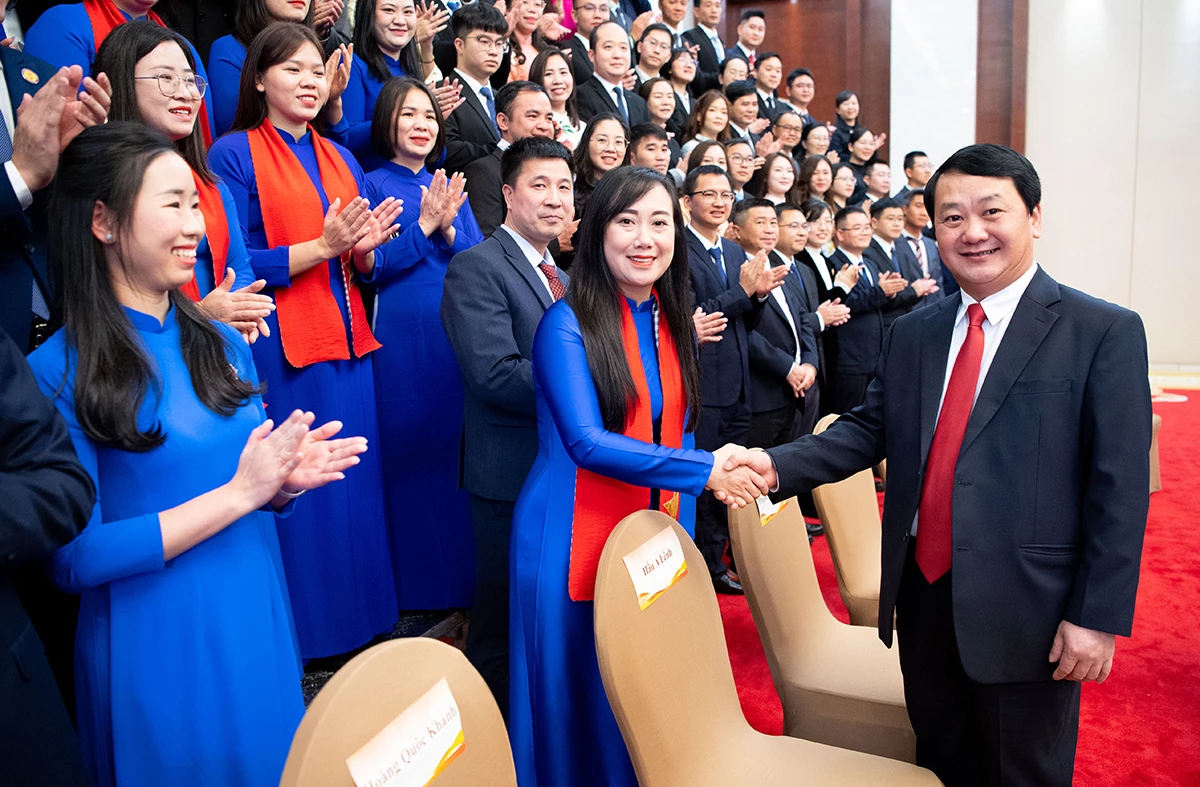 Đồng chí Bí thư Tỉnh ủy Hầu A Lềnh và thanh niên Tuyên Quang.