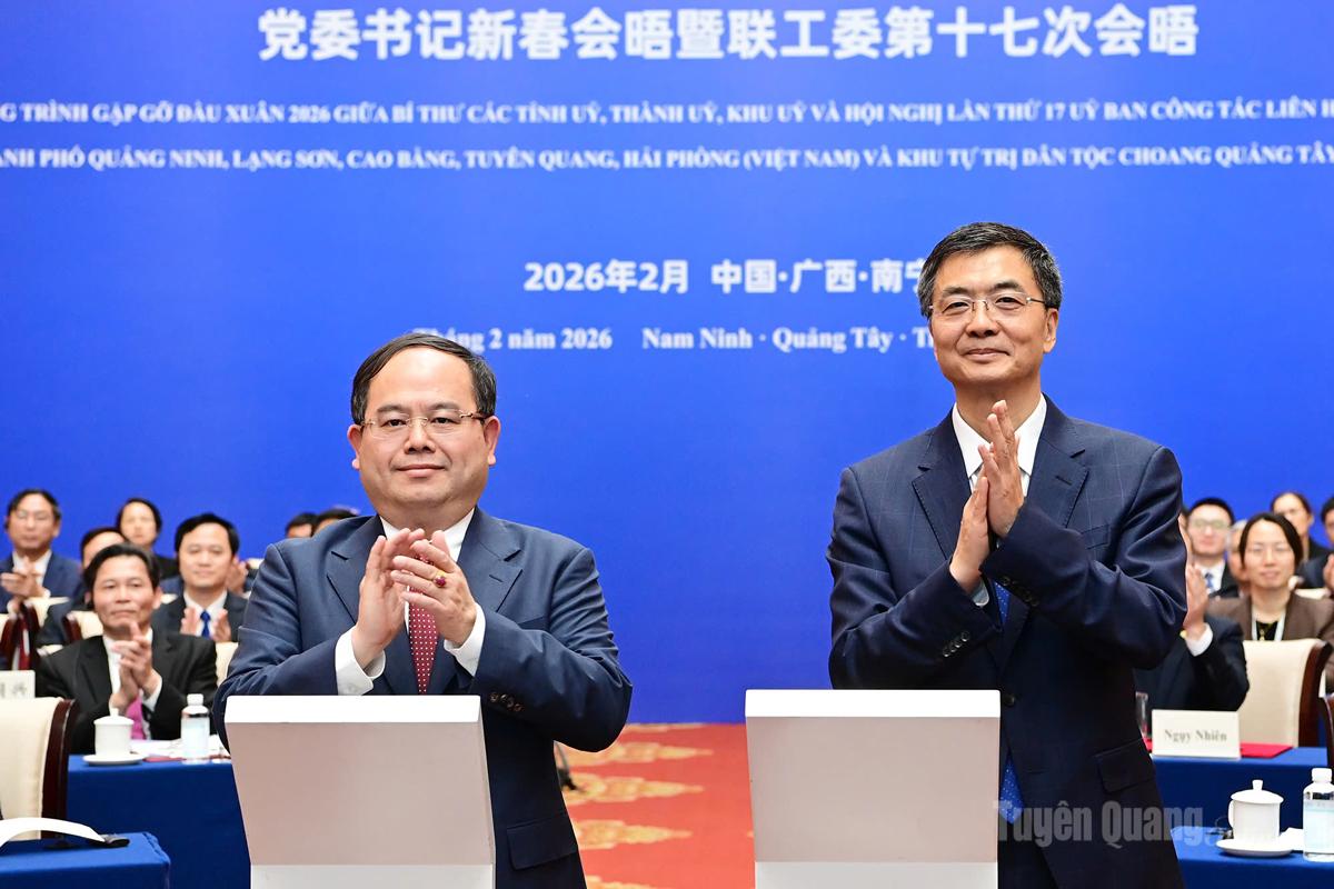 Tại chương trình, các Bí thư Tỉnh uỷ, Thành uỷ, Khu uỷ cùng ký kết “Biên bản ghi nhớ Hội nghị Gặp gỡ đầu Xuân năm 2026 giữa Bí thư Tỉnh uỷ, Thành uỷ các tỉnh, thành phố Quảng Ninh, Lạng Sơn, Cao Bằng, Tuyên Quang (Việt Nam) và Bí thư Khu uỷ Khu tự trị dân tộc Choang Quảng Tây (Trung Quốc)”.