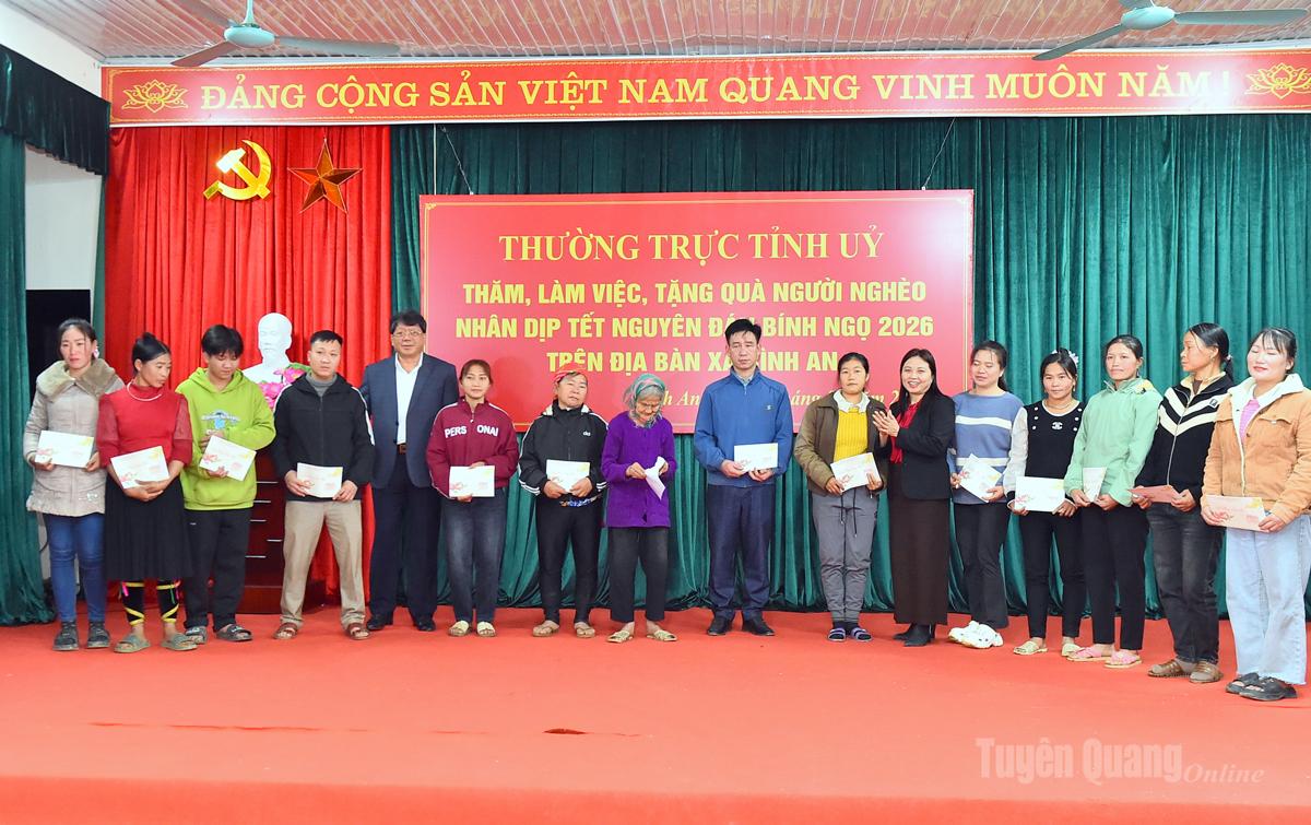 Chiều 11-2, đồng chí Lê Thị Kim Dung, Phó Bí thư Thường trực Tỉnh ủy đã tới thăm hỏi, động viên, trao tặng quà các hộ nghèo, hộ có hoàn cảnh khó khăn trên địa bàn xã Bình An nhân dịp Tết Nguyên đán Bính Ngọ 2026.