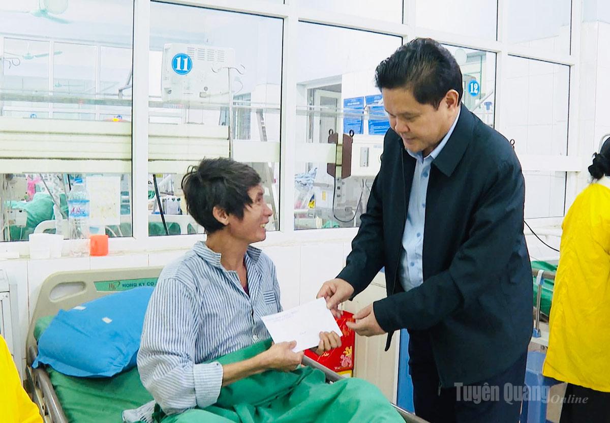 Đến thăm các bệnh nhân đang điều trị tại Khoa Hồi sức tích cực, Bệnh viện Đa khoa Hà Giang, đồng chí ân cần thăm hỏi, chia sẻ với những khó khăn, vất vả của người bệnh và gia đình. Đồng chí động viên các bệnh nhân yên tâm điều trị, tin tưởng vào đội ngũ y, bác sĩ để sớm ổn định sức khỏe, trở về sum họp cùng gia đình trong không khí ấm áp của mùa Xuân mới.