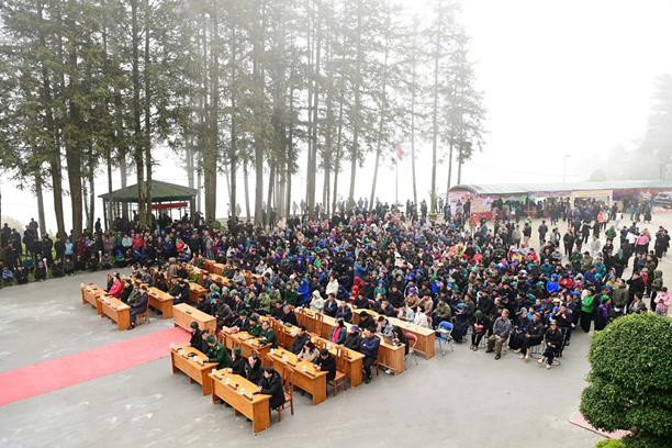 Các đồng chí đại biểu, du khách và Nhân dân tham dự Chương trình “Xuân Biên phòng ấm lòng dân bản - Hội chợ Nhân ái Xuân Bính Ngọ” năm 2026 tại xã Thàng Tín