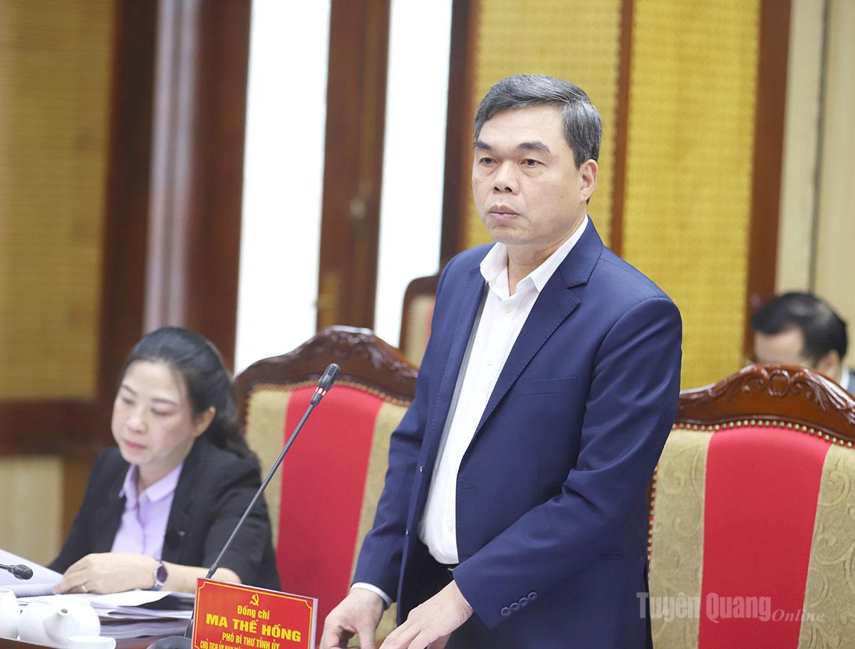 | Phó Bí thư Tỉnh ủy, Chủ tịch Ủy ban MTTQ tỉnh Ma Thế Hồng phát biểu tại phiên họp. |
