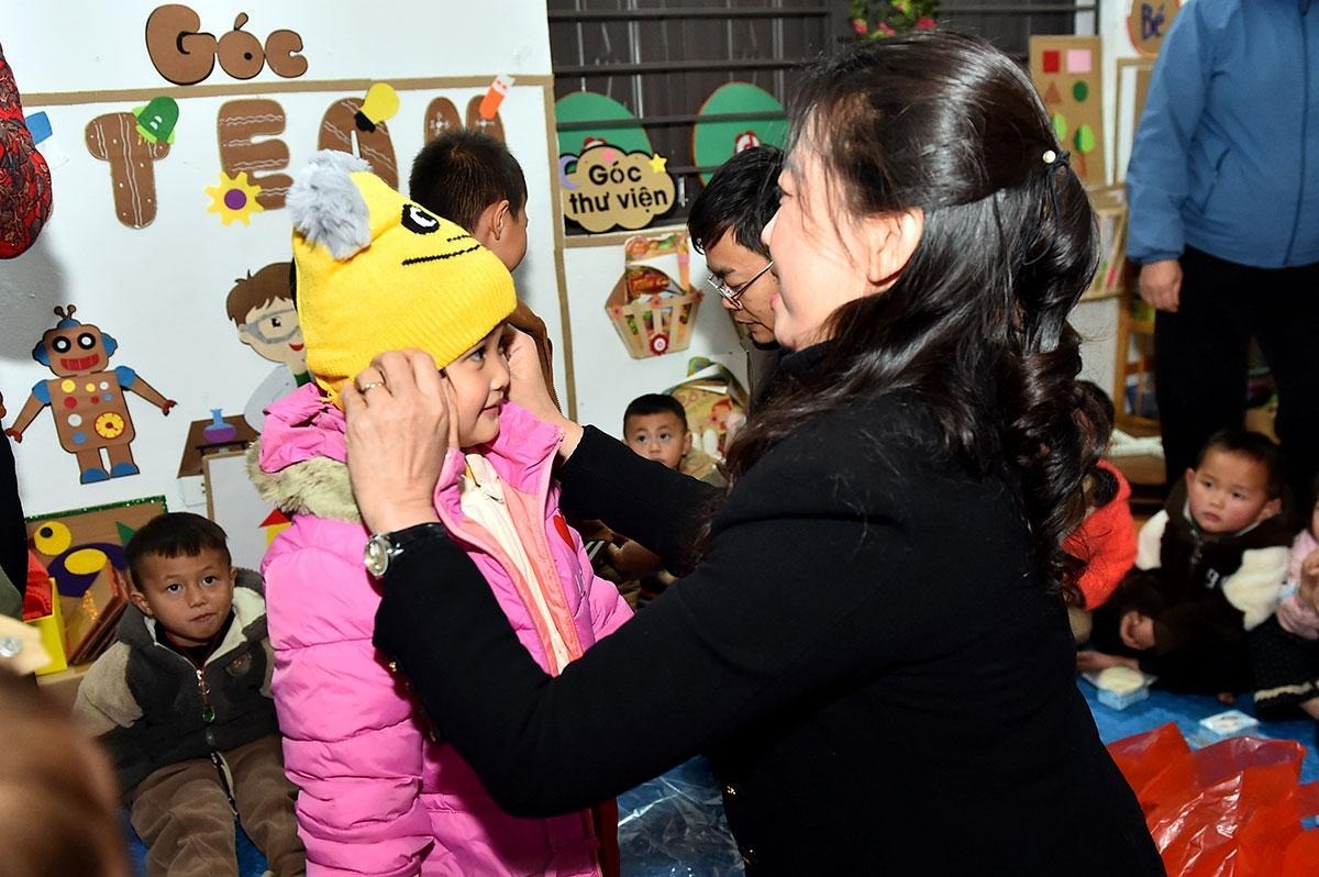 Đồng chí Phó Bí thư Thường trực Tỉnh ủy Lê Thị Kim Dung thăm, tặng quà cho các em học sinh điểm trường Mầm non, Tiểu học Hoàng Lỳ Pả, xã Minh Tân.