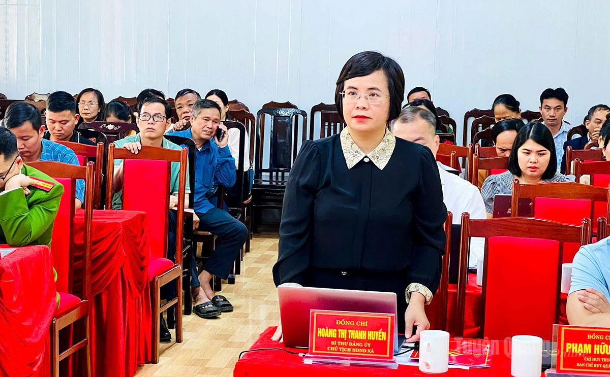 | Bí thư Đảng uỷ xã Việt Lâm Hoàng Thị Thanh Huyền, đại diện cử tri xã nêu ý kiến tại buổi tiếp xúc. |