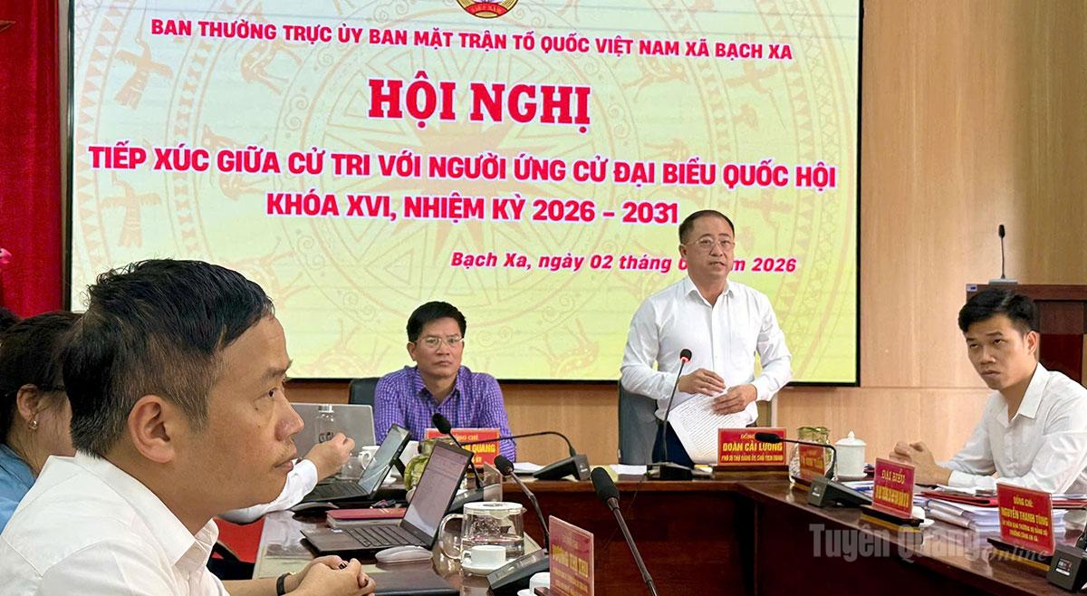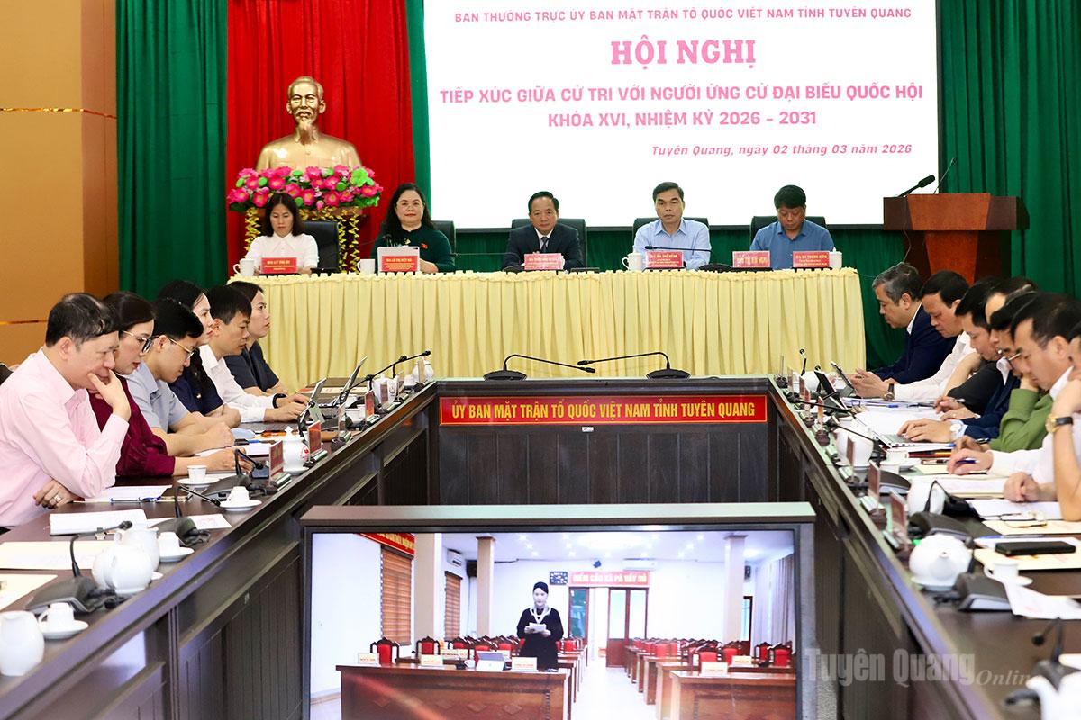 Sáng 2-3, Ban Thường trực Ủy ban MTTQ Việt Nam tỉnh Tuyên Quang tổ chức Hội nghị tiếp xúc giữa cử tri với người ứng cử đại biểu Quốc hội (ĐBQH) khóa XVI, nhiệm kỳ 2026 – 2031. Hội nghị được tổ chức trực tuyến kết nối từ điểm cầu Ủy ban MTTQ Việt Nam tỉnh đến điểm cầu UBND các xã, phường: Yên Phú, Bạch Xa, Yên Thành, Tân Trịnh, Trung Thịnh, Pờ Ly Ngài, Hoàng Su Phì, Nậm Dịch, Hồ Thầu, Việt Lâm, Vị Xuyên, Hà Giang 1.