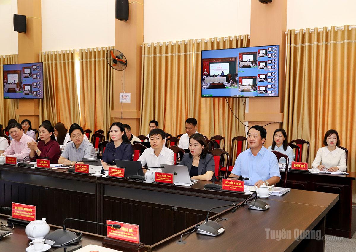 Bí thư Tỉnh uỷ Hầu A Lềnh và các đại biểu dự tại điểm cầu Uỷ ban MTTQ tỉnh.