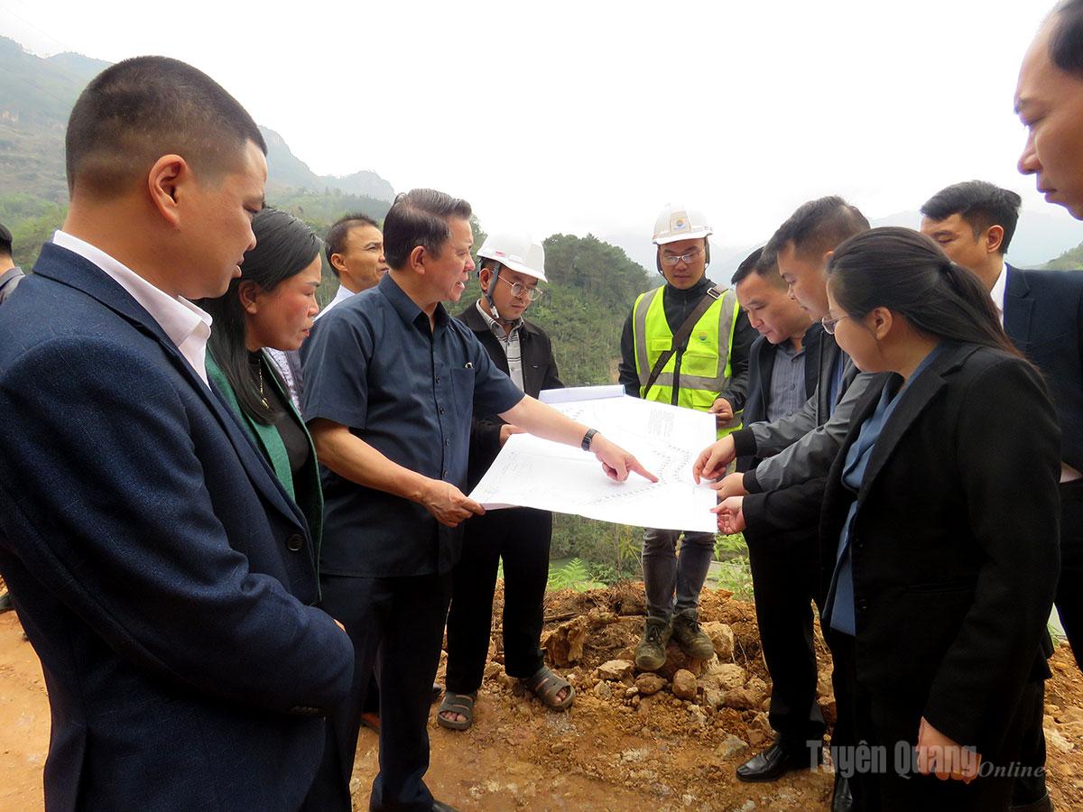 Đồng chí Trưởng ban Tuyên giáo và Dân vận Tỉnh ủy kiểm tra thực địa, nghe đơn vị chuyên môn báo cáo phương án quy hoạch, triển khai Dự án bố trí ổn định dân cư xã Bản Ngò (nay thuộc xã Pà Vầy Sủ). |
