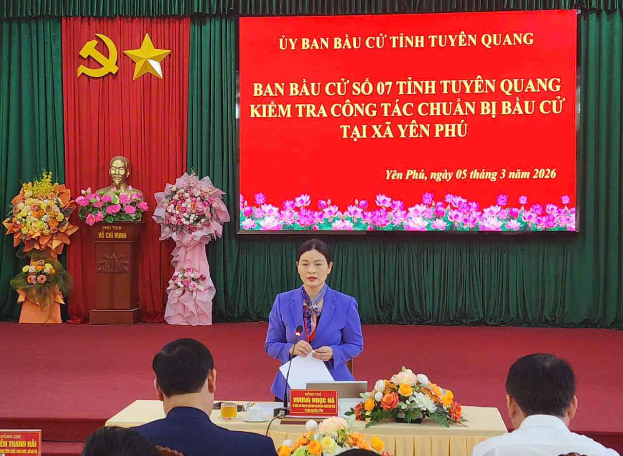 Chiều ngày 05/3, Đoàn kiểm tra của Ban Bầu cử số 07 tỉnh Tuyên Quang đã kiểm tra công tác chuẩn bị bầu cử đại biểu Quốc hội và đại biểu Hội đồng nhân dân nhiệm kỳ 2026 - 2031 tại xã Yên Phú. Đồng chí Vương Ngọc Hà, Ủy viên Ban Thường vụ Tỉnh ủy, Phó Chủ tịch Ủy ban nhân dân tỉnh, Ủy viên Ủy ban bầu cử, Trưởng Ban Bầu cử số 07 làm trưởng đoàn.