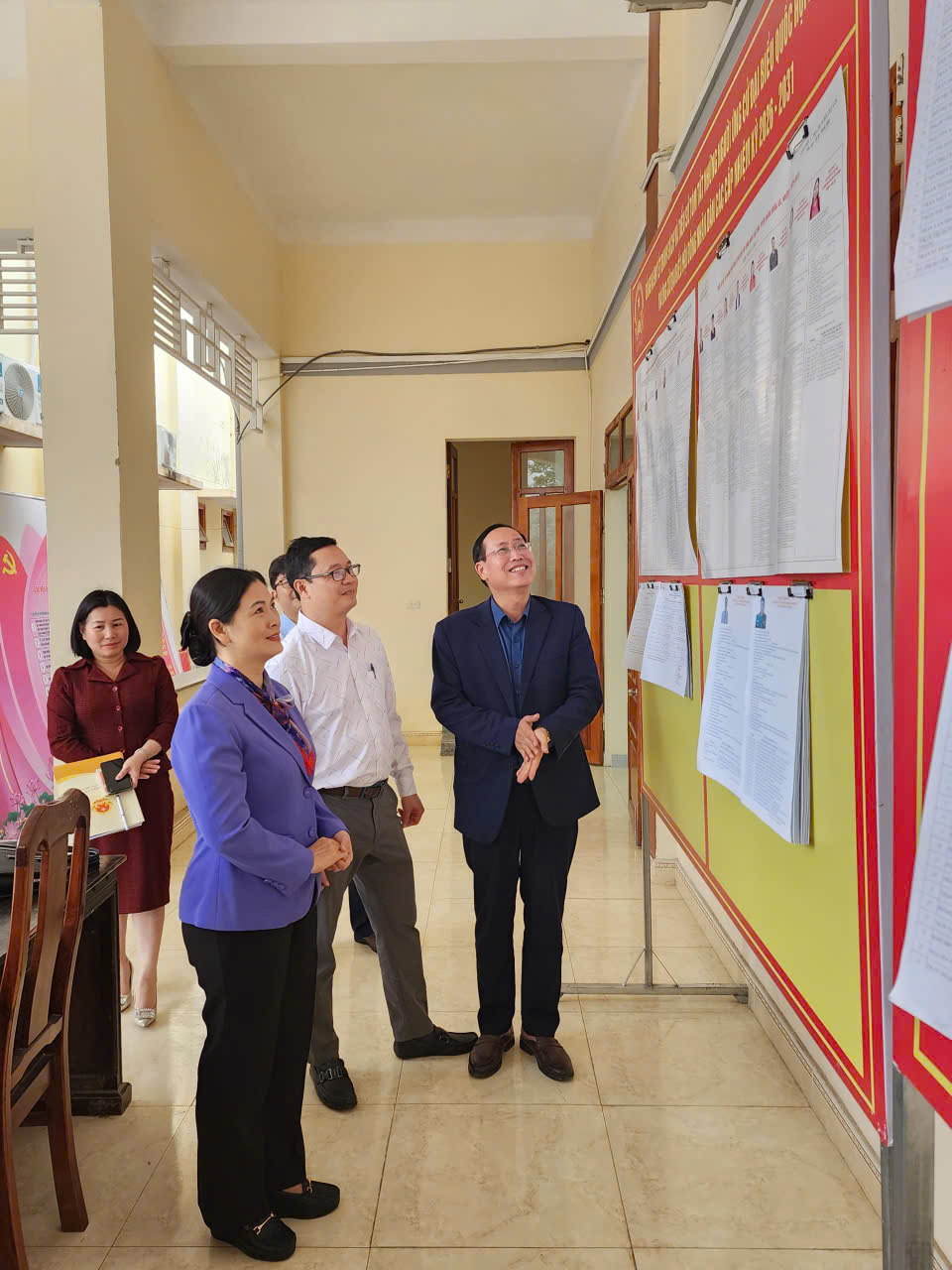 Đoàn công tác kiểm tra khu vực niêm yết danh sách những người ứng cử ĐBQH và đại biểu HĐND tỉnh tại xã Yên Phú