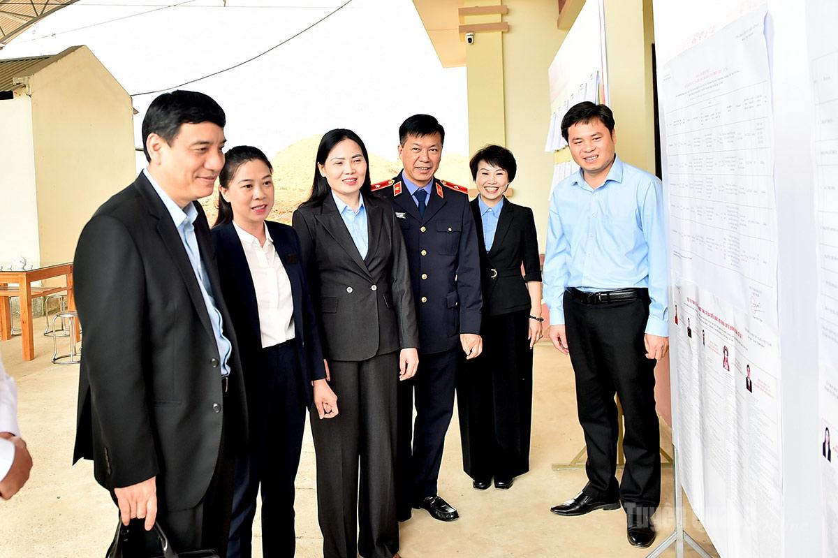 | Các đại biểu kiểm tra bảng niêm yết danh sách cử tri tại điểm bầu cử xã Nhữ Khê. |