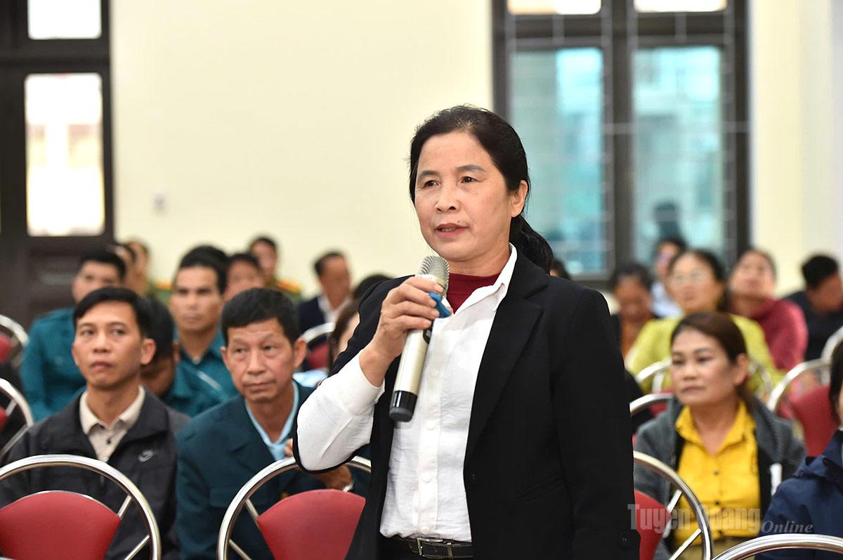 | Cử tri xã Nhữ Khê phát biểu tại hội nghị. |
