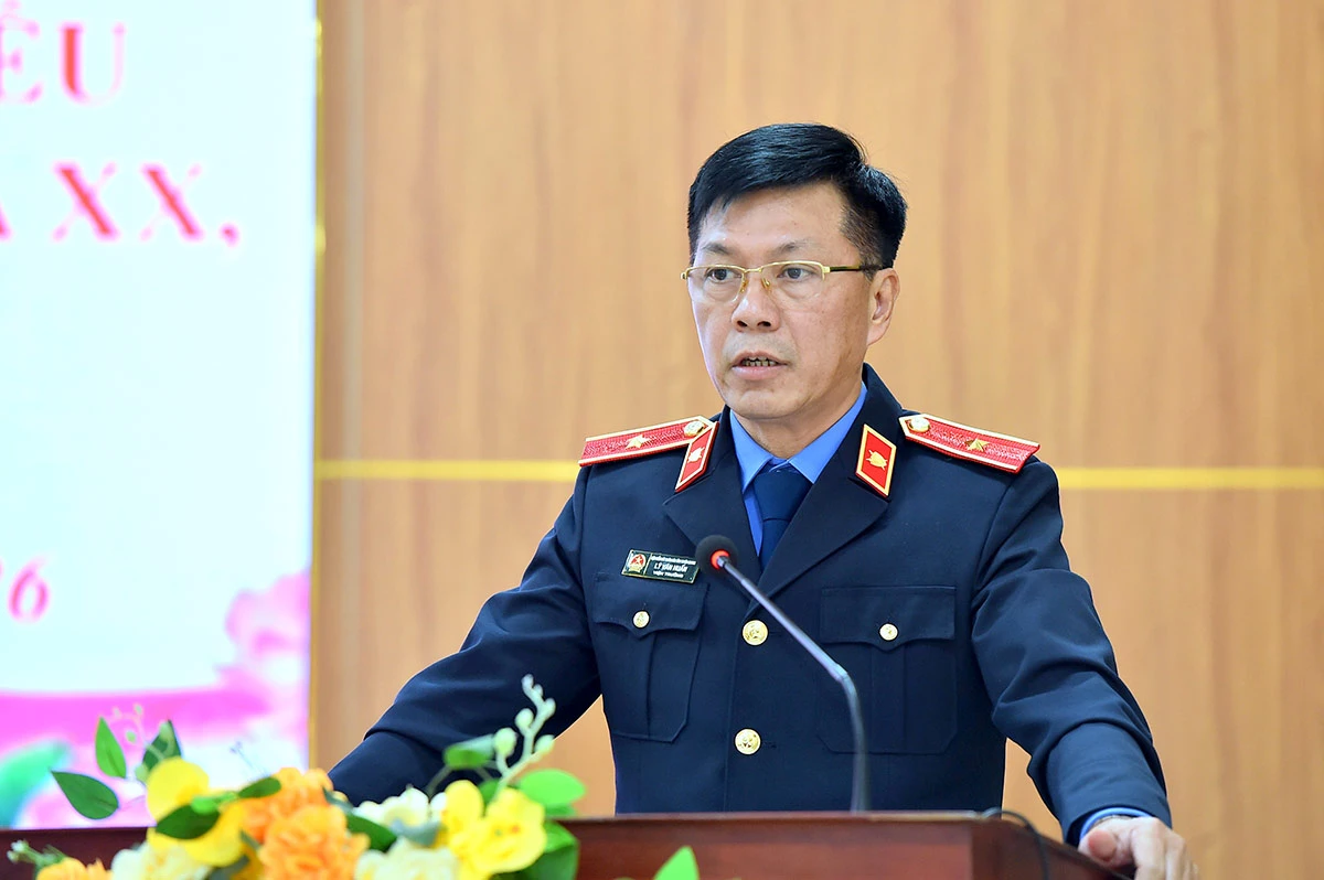 | Đồng chí Lý Văn Huấn, Viện trưởng Viện kiểm sát nhân dân tỉnh phát biểu với cử tri xã Nhữ Khê. |