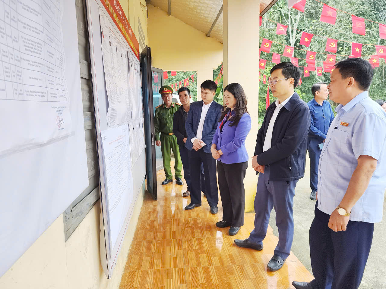 Đoàn kiểm tra việc niêm yết danh sách cử tri tại xã Tiên Yên