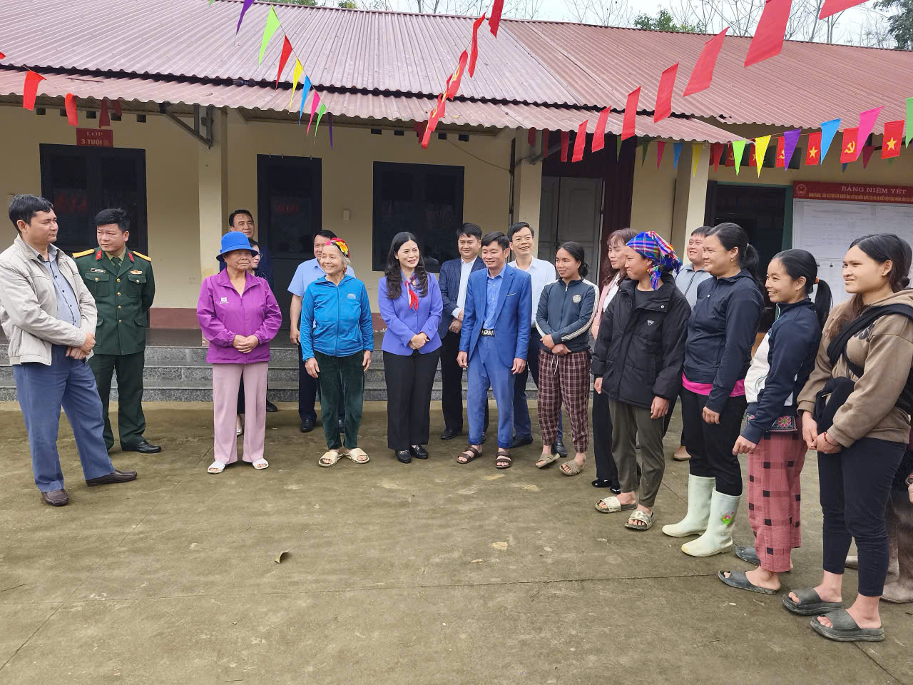 Đoàn kiểm tra gặp gỡ, trao đổi với bà con dân tộc La Chí tại khu vực bỏ phiếu số 3, thôn Hạ Sơn, xã Tiên Yên