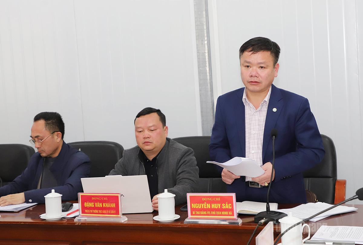 | Bí thư Đảng ủy xã Sơn Vĩ báo cáo tại hội nghị. |