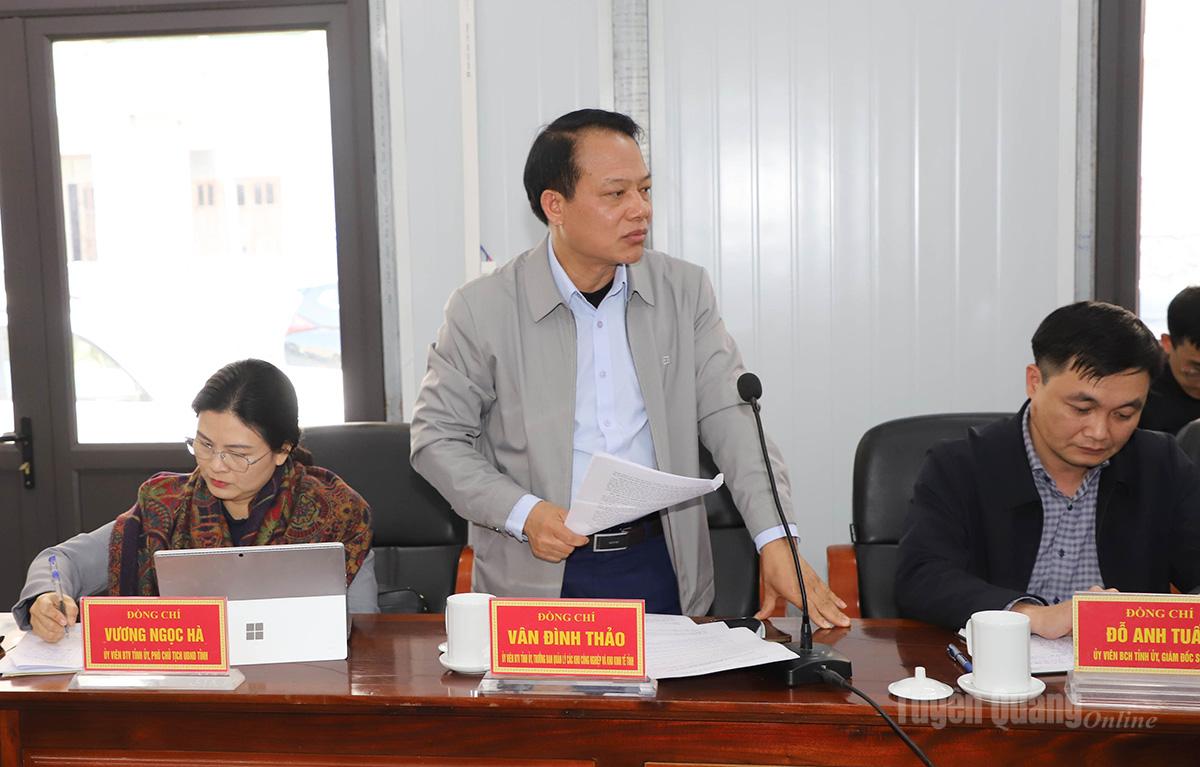 Đồng chí Vân Đình Thảo, Ủy viên Ban Thường vụ Tỉnh ủy, Trưởng Ban Quản lý các khu công nghiệp và khu kinh tế tỉnh phát biểu tại hội nghị. |