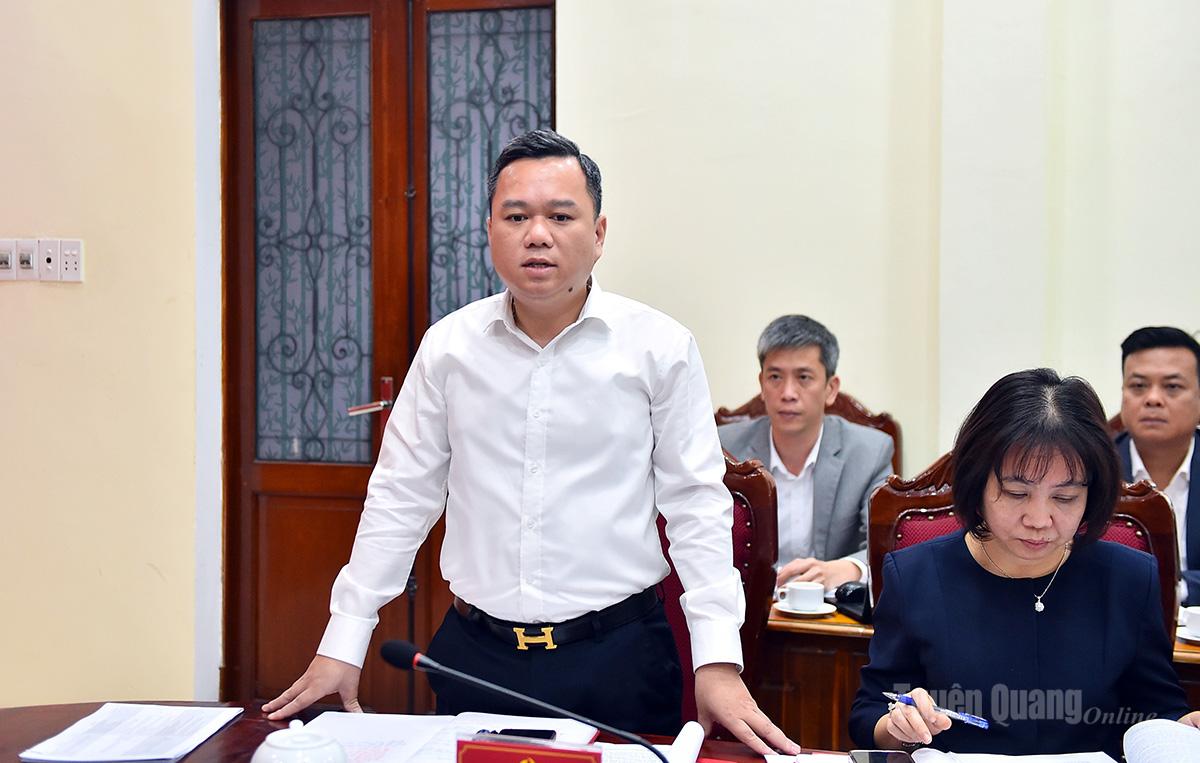 | Bí thư Đảng ủy phường Minh Xuân Đỗ Hùng Đức phát biểu tại buổi làm việc. |