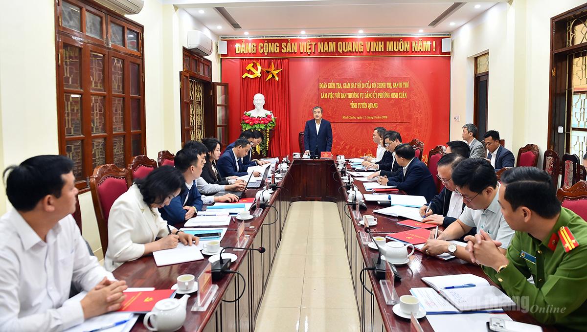 Đoàn kiểm tra, giám sát của Bộ Chính trị, Ban Bí thư làm việc tại phường Minh Xuân. |