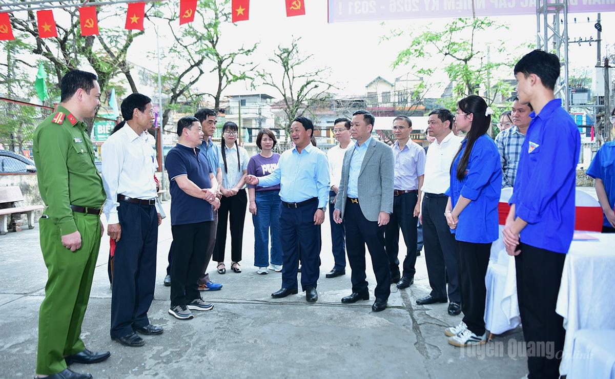 | Đồng chí Bí thư Tỉnh uỷ Hầu A Lềnh yêu cầu phường Minh Xuân cần tiếp tục tập trung cao độ, rà soát kỹ từng khâu, từng phần việc, bảo đảm cuộc bầu cử diễn ra dân chủ, đúng pháp luật, an toàn và tiết kiệm. |