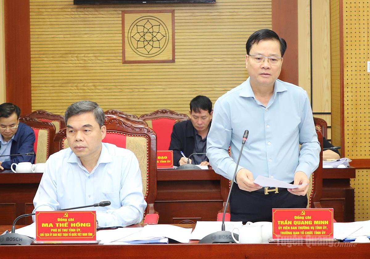 Trưởng Ban Tổ chức Tỉnh ủy Trần Quang Minh thảo luận tại hội nghị.