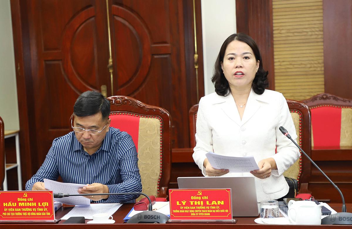 Đồng chí Lý Thị Lan, Ủy viên Ban Thường vụ Tỉnh ủy, Trưởng Đoàn đại biểu Quốc hội hoạt động chuyên trách tỉnh trình bày công tác lãnh đạo, chỉ đạo thực hiện nhiệm vụ quý I/2026.