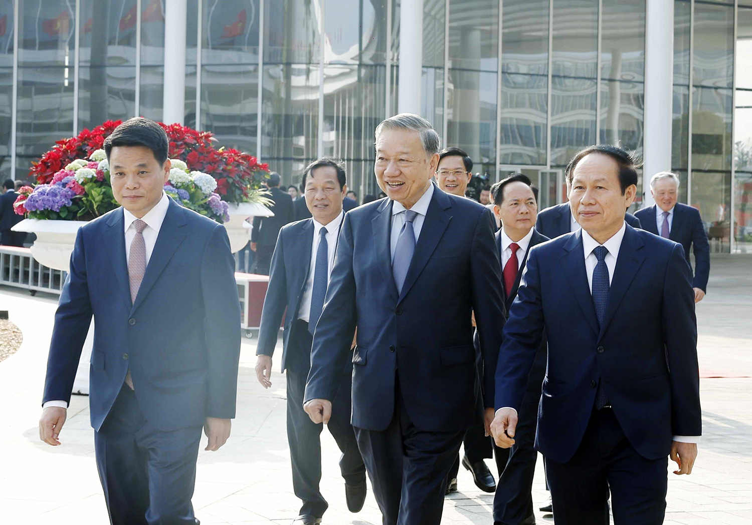 Tổng Bí thư làm việc với Ban Chấp hành Đảng bộ thành phố Hải Phòng về kết quả lãnh đạo, chỉ đạo, tổ chức nghiên cứu, học tập, quán triệt, tuyên truyền và triển khai thực hiện Nghị quyết Đại hội XIV của Đảng _Ảnh: TTXVN