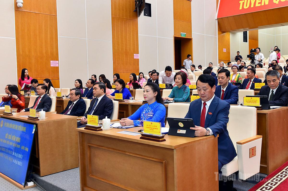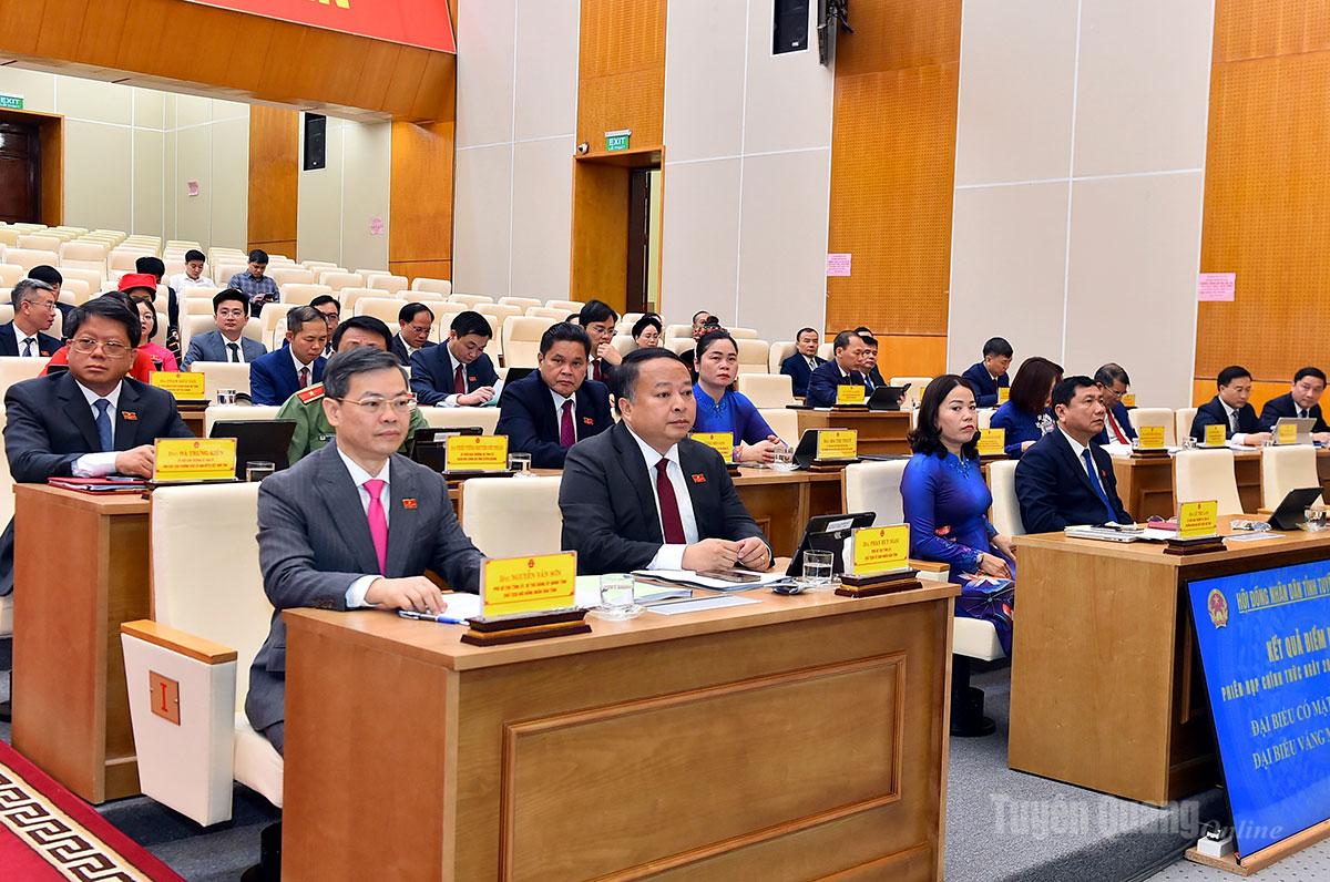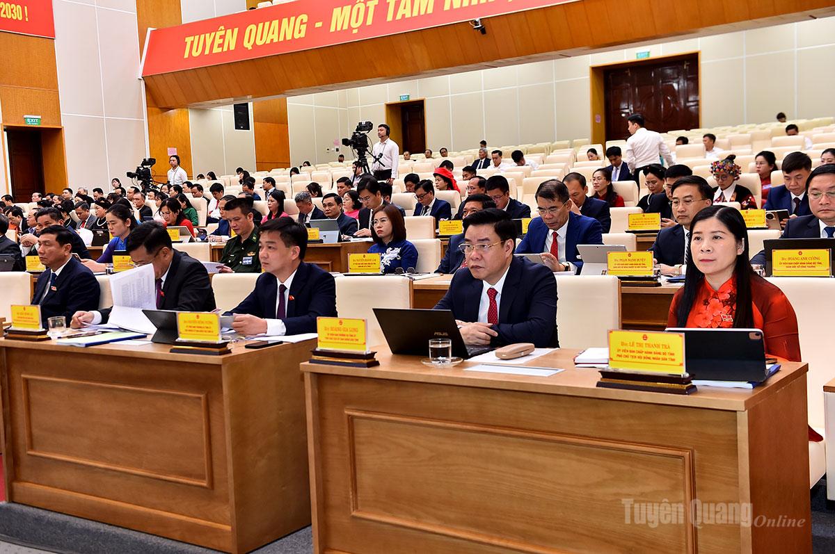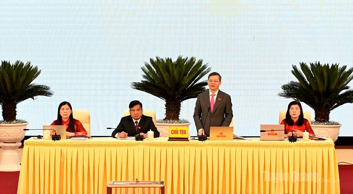 Kỳ họp đã xem xét, thảo luận và thông qua 6 nghị quyết quan trọng, gồm: Nghị quyết Quy chế làm việc của Hội đồng nhân dân tỉnh Tuyên Quang khóa XX, nhiệm kỳ 2026 – 2031; Nghị quyết bãi bỏ Nghị quyết số 03/2025/NQ-HĐND ngày 27/6/2025 của HĐND tỉnh Hà Giang (trước sắp xếp) về thẩm quyền quyết định thanh lý và xử lý chi phí thanh lý rừng trồng; Nghị quyết quyết định chủ trương chuyển mục đích sử dụng rừng sang mục đích khác để thực hiện công trình bố trí, sắp xếp ổn định khu dân cư thôn Ngõa, xã Yên Phú; Nghị quyết cho ý kiến về mức tỷ lệ phần trăm (%) để tính đơn giá thuê đất, bao gồm đơn giá thuê đất xây dựng công trình ngầm và đất có mặt nước trên địa bàn tỉnh; Nghị quyết Ban hành Kế hoạch tổ chức các kỳ họp thường lệ năm 2026 của Hội đồng nhân dân tỉnh Tuyên Quang khóa XX, nhiệm kỳ 2026-2031; Quy định chính sách hỗ trợ đối với học sinh đang học bán trú, học sinh thuộc hộ nghèo không thuộc đối tượng hưởng theo Nghị định số 66/2025/NĐ-CP ngày 12 tháng 3 năm 2025 của Chính phủ tại các cơ sở giáo dục phổ thông công lập trên địa bàn tỉnh Tuyên Quang.