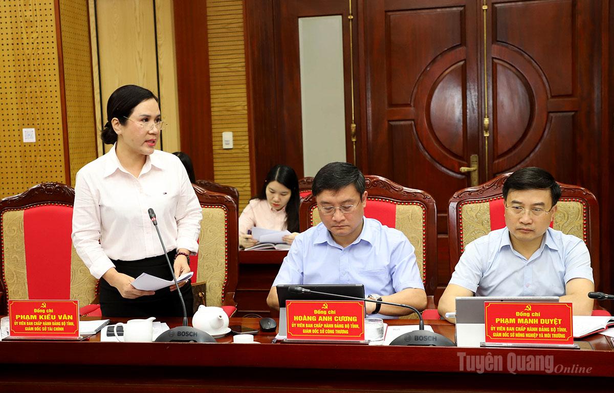| Giám đốc Sở Tài chính Phạm Kiều Vân báo cáo tại phiên họp. |