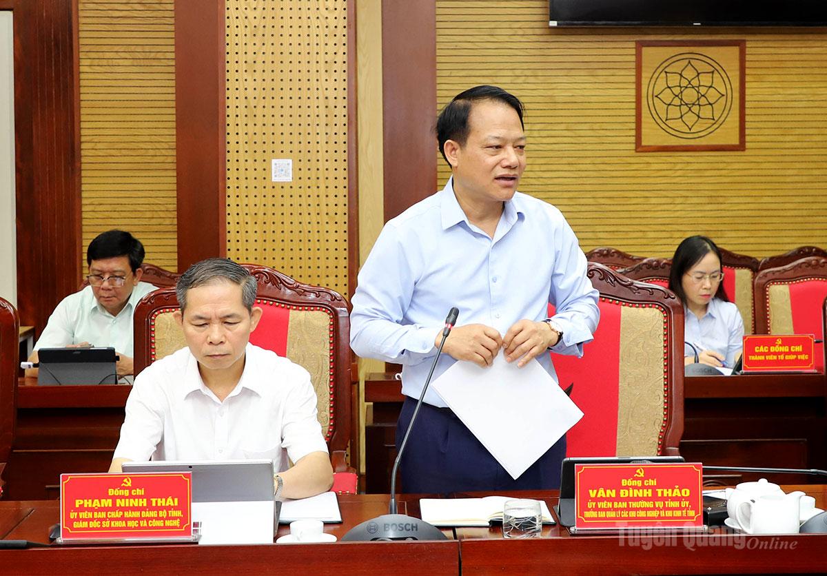 | Trưởng Ban quản lý các khu công nghiệp và khu kinh tế tỉnh Vân Đình Thảo thảo luận tại phiên họp. |