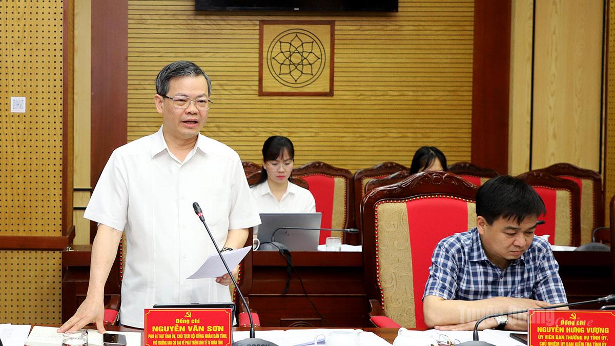 | Phó Bí thư Tỉnh ủy, Chủ tịch HĐND tỉnh Nguyễn Văn Sơn phát biểu tại phiên họp. |