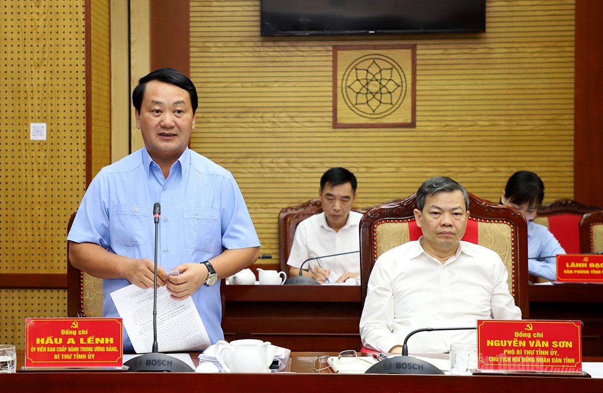 Phát biểu tiếp thu ý kiến của đoàn công tác, đồng chí Hầu A Lềnh, Bí thư Tỉnh ủy khẳng định những đánh giá của đoàn công tác đã ghi nhận khách quan những kết quả trên các mặt công tác của tỉnh đã đạt được trong thời gian qua; đồng thời cũng chỉ rõ những hạn chế và định hướng nhiều nhiệm vụ, giải pháp có ý nghĩa thiết thực, sát với yêu cầu phát triển của tỉnh trong giai đoạn tới. Tỉnh sẽ tiếp tục cụ thể hoá việc học tập, tuyên truyền và triển khai Nghị quyết Đại hội Đảng lần thứ XIV bằng các chương trình, kế hoạch để đưa nghị quyết vào thực tiễn, quyết tâm hoàn thành các nhiệm vụ Nghị quyết đã đề ra.