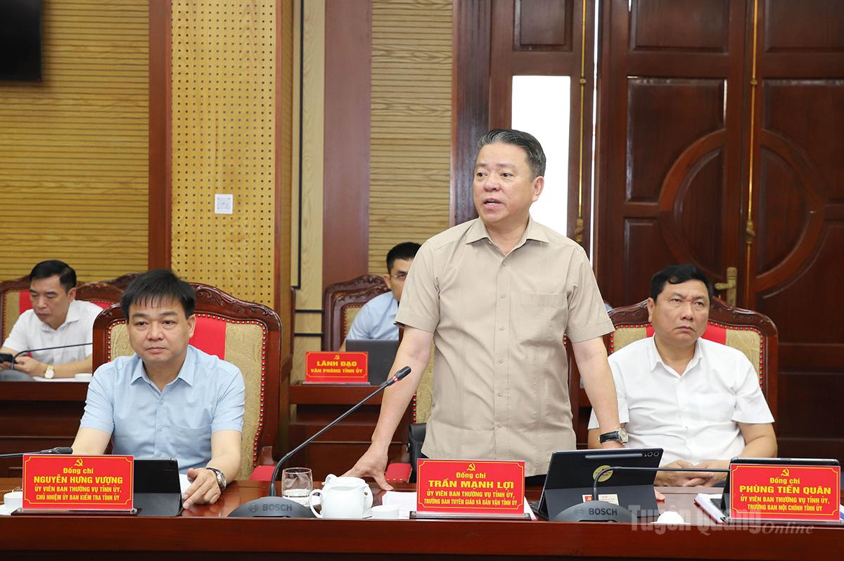 | Trưởng Ban Tuyên giáo và Dân vận Tỉnh ủy Trần Mạnh Lợi thảo luận tại hội nghị. |
