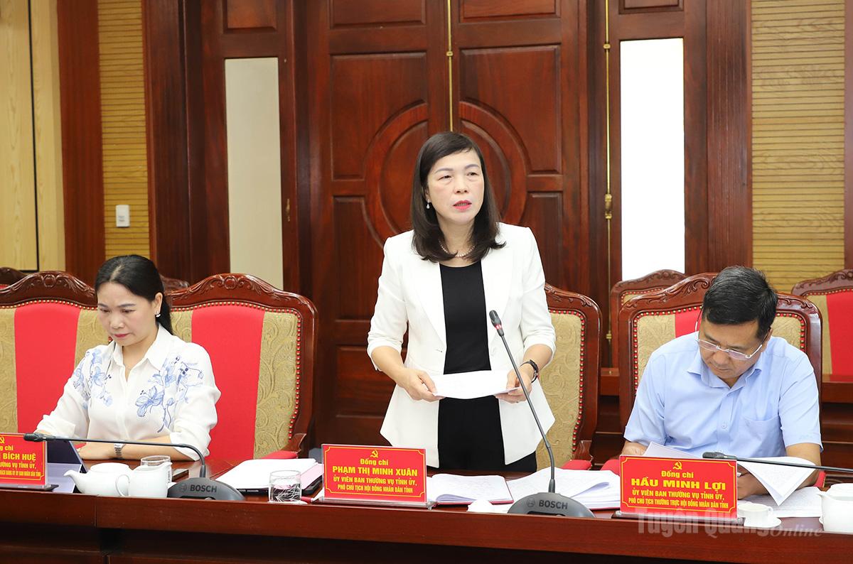 | Phó Chủ tịch HĐND tỉnh Phạm Thị Minh Xuân thảo luận tại hội nghị. |