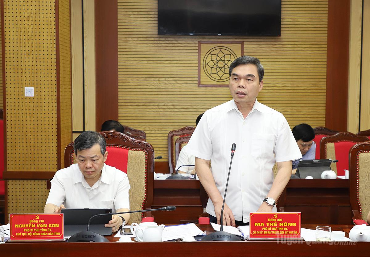 | Phó Bí thư Tỉnh ủy, Chủ tịch Ủy ban MTTQ tỉnh thảo luận tại hội nghị. |