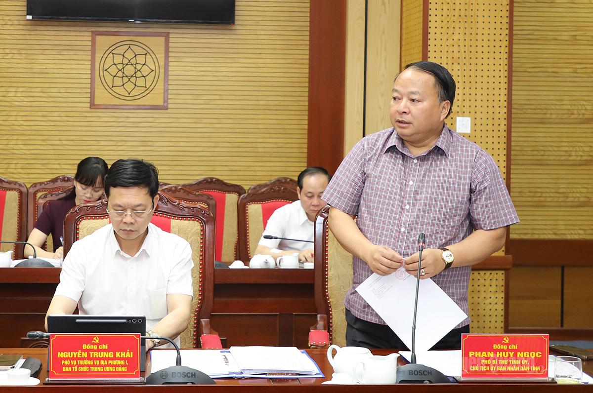 | Phó Bí thư Tỉnh ủy, Chủ tịch UBND tỉnh Phan Huy Ngọc thảo luận tại hội nghị. |