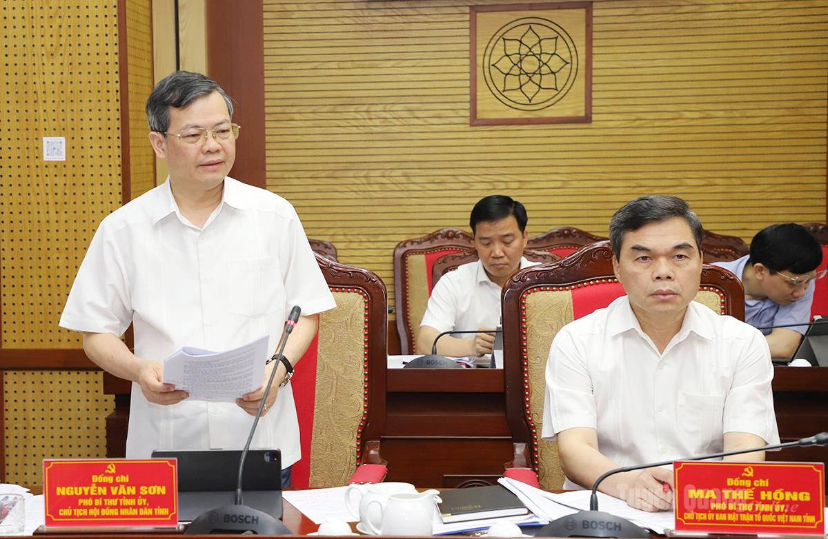 | Phó Bí thư Tỉnh ủy, Chủ tịch HĐND tỉnh Nguyễn Văn Sơn thảo luận tại hội nghị. |