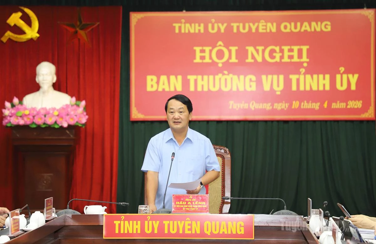 Sáng 10-4, đồng chí Hầu A Lềnh, Ủy viên BCH Trung ương Đảng, Bí thư Tỉnh ủy đã chủ trì Hội nghị Ban Thường vụ Tỉnh ủy để cho ý kiến vào những nội dung quan trọng. Tham dự hội nghị có các đồng chí: Nguyễn Văn Sơn, Phó Bí thư Tỉnh ủy, Chủ tịch HĐND tỉnh; Phan Huy Ngọc, Phó Bí thư Tỉnh ủy, Chủ tịch UBND tỉnh; Ma Thế Hồng, Phó Bí thư Tỉnh ủy, Chủ tịch Ủy ban MTTQ tỉnh; các đồng chí Ủy viên Ban Thường vụ Tỉnh ủy; lãnh đạo các sở, ngành và đại diện các Ban Xây dựng Đảng Trung ương phụ trách theo dõi tỉnh Tuyên Quang.