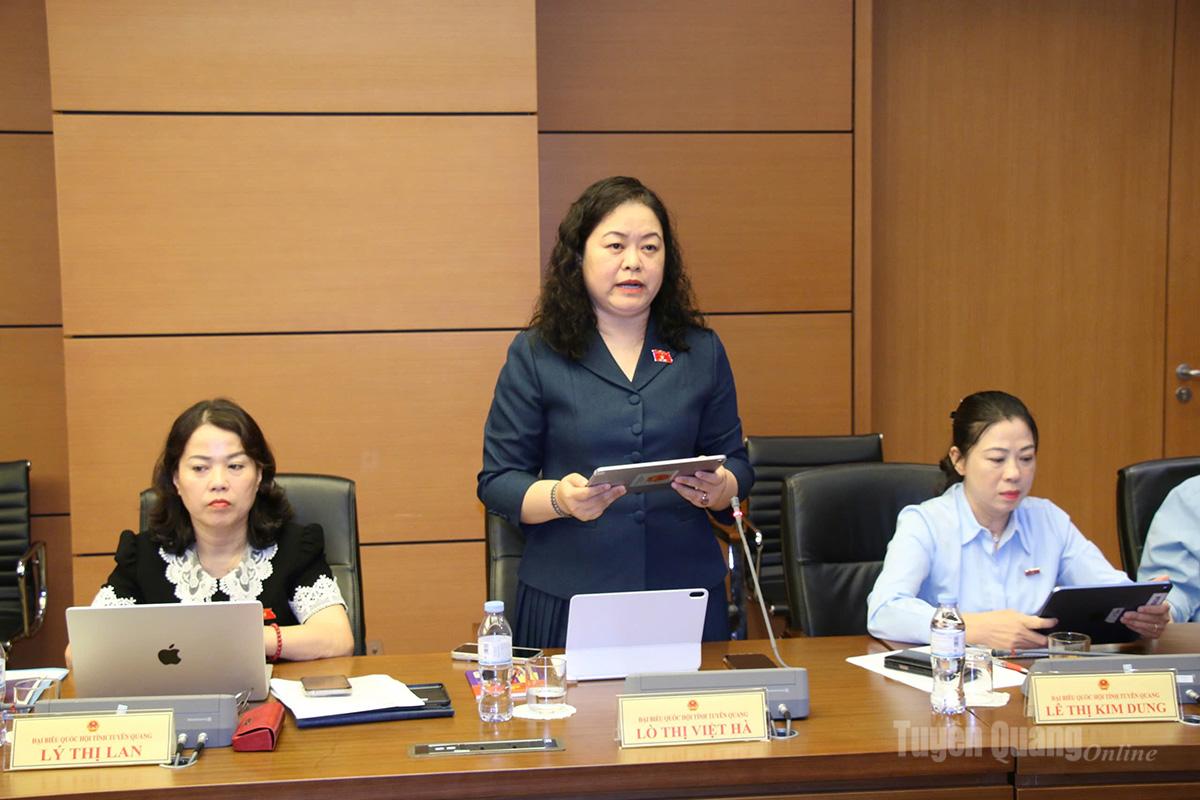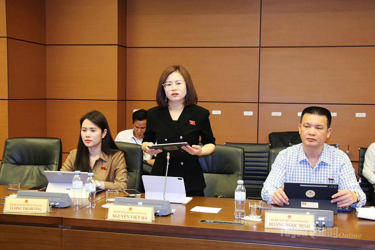 | Đại biểu Lò Thị Việt Hà, Đoàn ĐBQH khóa XVI tỉnh Tuyên Quang phát biểu ý kiến. |