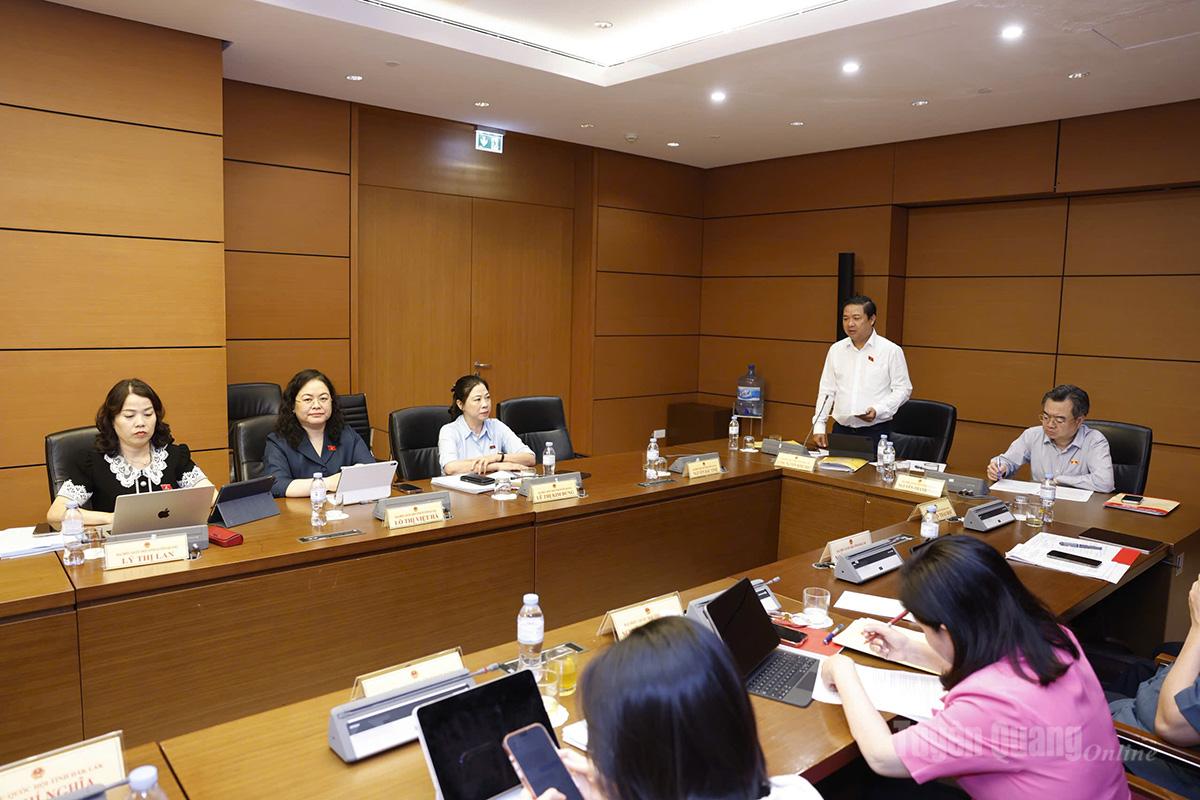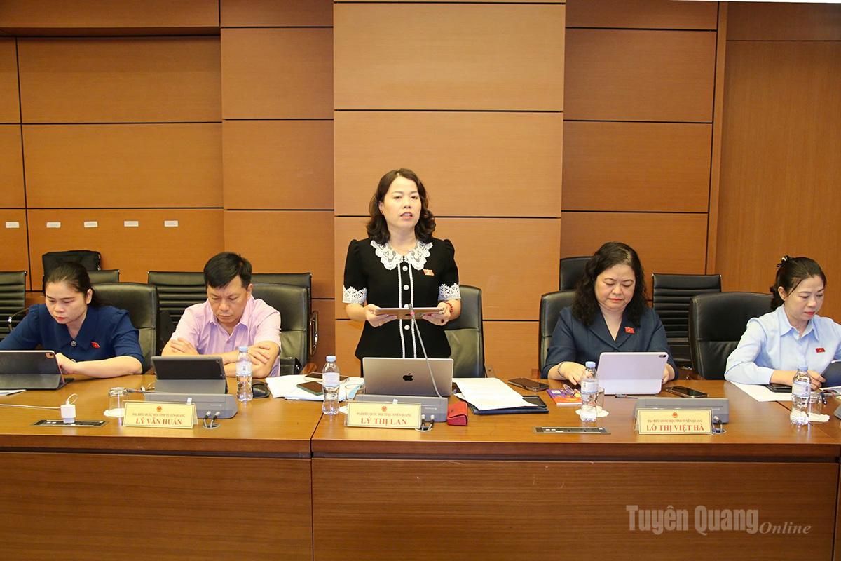 Đại biểu Lý Thị Lan, Ủy viên Ban Thường vụ Tỉnh ủy, Phó Trưởng đoàn hoạt động chuyên trách Đoàn ĐBQH tỉnh Tuyên Quang khóa XVI thảo luận.. |
