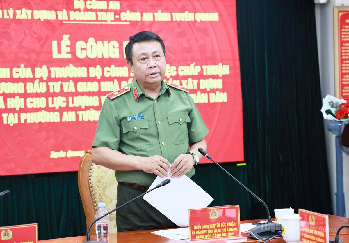 | Thiếu tướng Nguyễn Đức Thuận, Giám đốc Công an tỉnh phát biểu tại buổi lễ. |