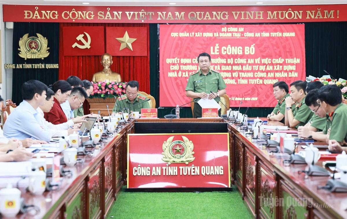 Ngày 13-4, tại trụ sở Công an tỉnh Tuyên Quang, Bộ Công an phối hợp với UBND tỉnh tổ chức Lễ công bố Quyết định của Bộ trưởng Bộ Công an về việc phê duyệt chủ trương đầu tư, đồng thời giao chủ đầu tư thực hiện Dự án xây dựng nhà ở xã hội cho lực lượng vũ trang Công an nhân dân (CAND) trên địa bàn tỉnh.